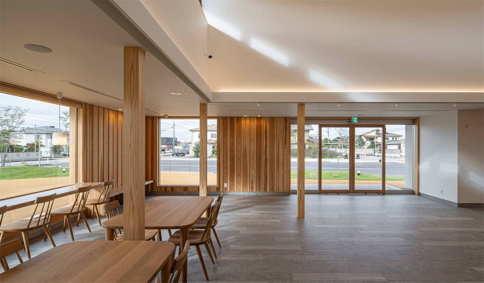 Oct.20.2025 店舗・商業施設 地域の活性化の拠点となる菓子店 01 02 03 04 2024年 平屋 61.32坪 富山県富山市 (積雪1.5m) 米田木材株式会社 / 米田木材株式会社 最大スパン:5.5m 高天井とすることで平屋でも開放感を感じられる空間に。