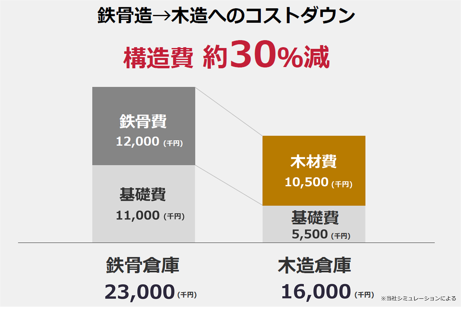 1.圧倒的な軽量化:S造の約60%という木造の軽さが、地盤改良、杭工事、コンクリート、残土処分費の全てを劇的に圧縮します。